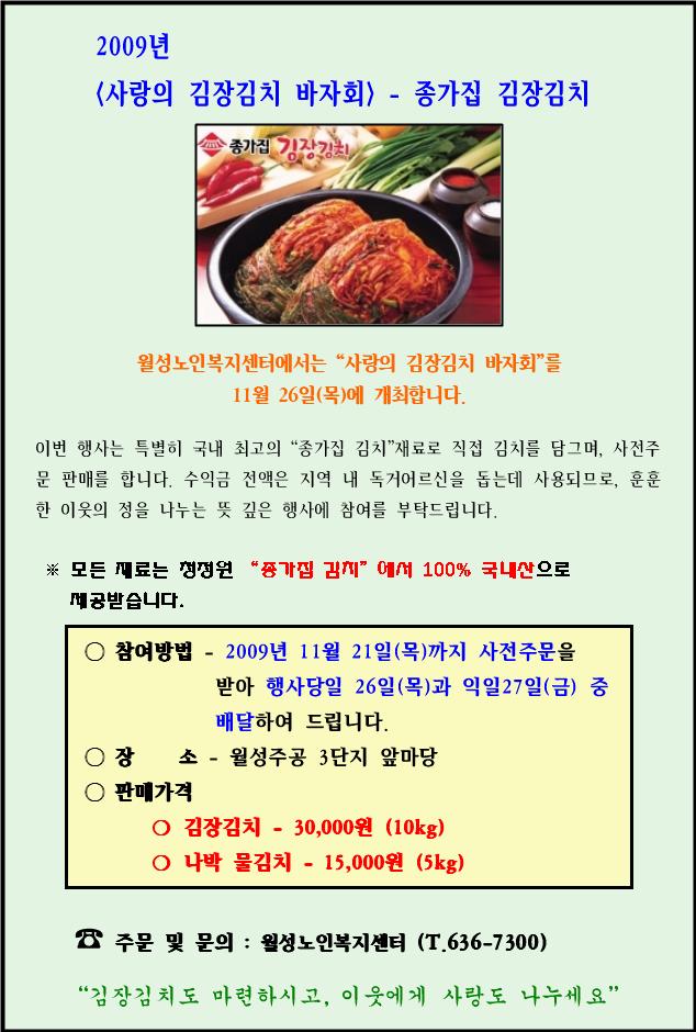 2009³â <»ç¶ûÀÇ ±èÀå±èÄ¡ ¹ÙÀÚȸ> - Á¾°¡Áý ±èÄ¡